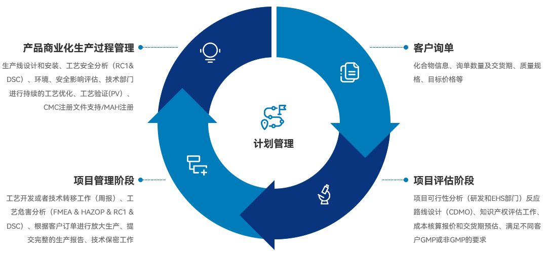 在藥物獲批上市并進入商業化生產階段后,公司為客戶提供關鍵中間體的規模化生產和持續性工藝優化服務,以對藥物質量、生產安全性、EHS合規性等方面進行持續改進和升級,并有效降低成本,提升產品競爭力。