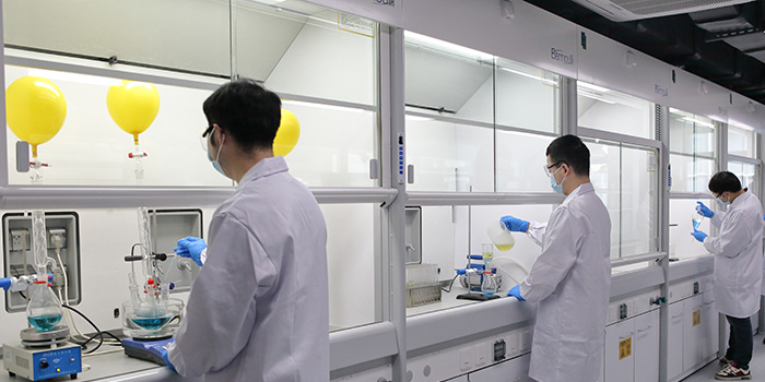 研發實驗室建筑面積6300余平方米,擁有小試合成實驗室、公斤級放大合成實驗室、研發分析實驗室,滿足從毫克、克到公斤級的研發、優化及放大。